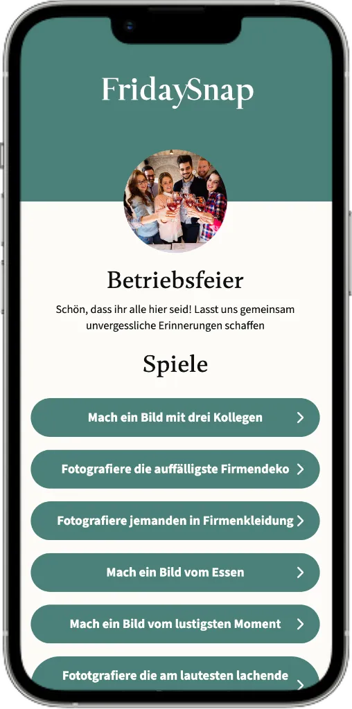 Erstellt eure individuelle Fotoaufgaben für eure Mitarbeiter, wie z.B. "Fotografiere jemanden in Firmenkleidung"